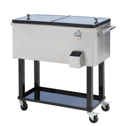 Home > Outsunny 80 QT Rolling Cooling Bins Ice Chest on Wheels Outdoor Stand Up Drink Cooler Cart for Party, Silver